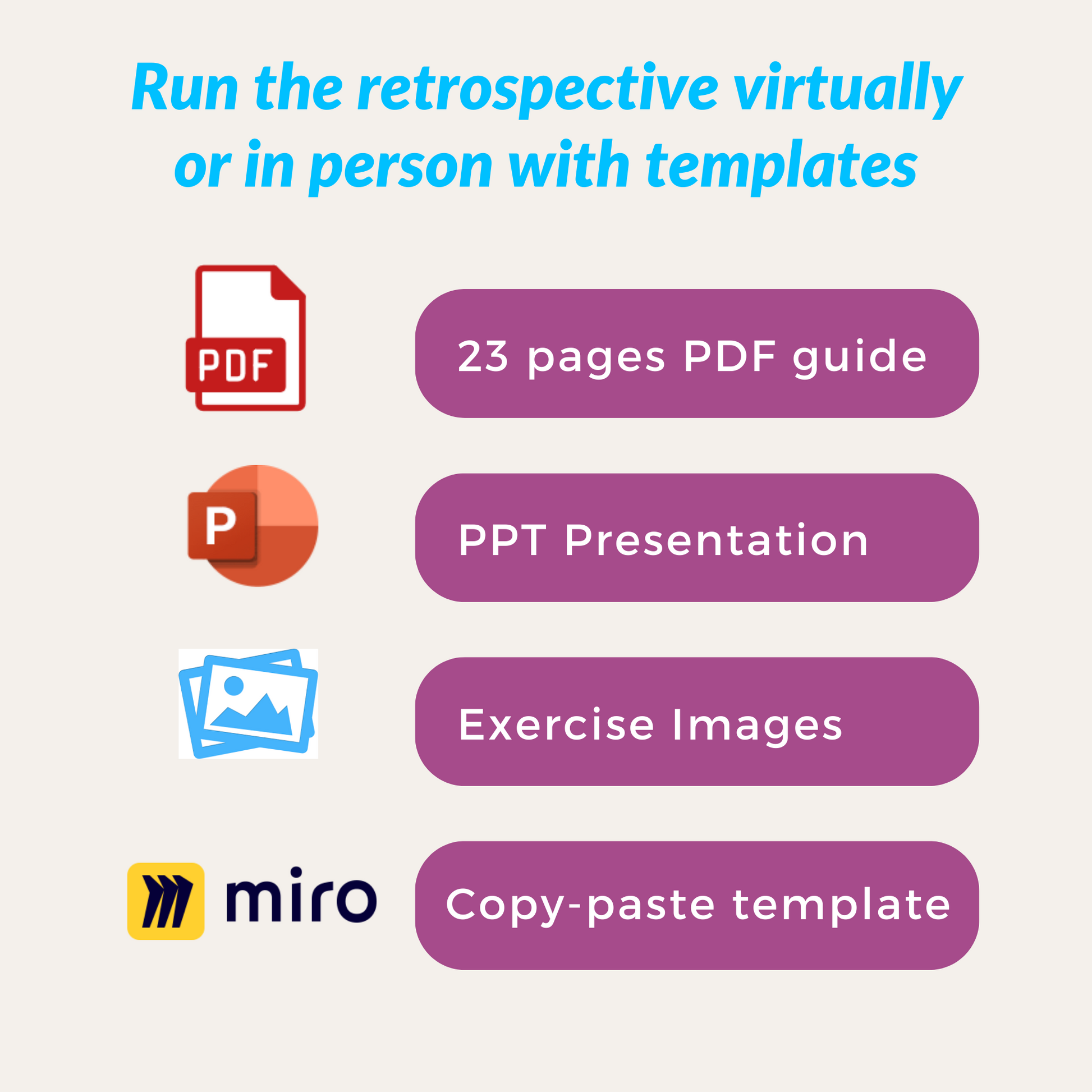 - Step-by-step instructions. Clear instructions will guide you through the session even if you never run a retrospective before.